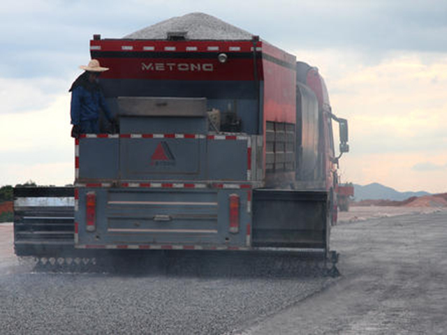 同步碎石封層用于下封層,施工后可有效防水,保護路基防止凍融破壞;次年攤鋪時上下層接合更好;可適當開放交通允許車輛碾壓,保證路基安全過冬。