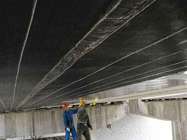 碳纖維是以聚丙烯腈或者中間相瀝青纖維為原料經(jīng)過高溫碳化制成。用于混凝土結(jié)構(gòu)補強的碳纖維種類較多,可以按不同的分類方法進行劃分。按形狀分類,可分為:片材(包括布狀和板狀);棒材;型材;短纖維。按力學(xué)性能可以分為:高模量纖維;高強度纖維和中等彈性模量纖維。在結(jié)構(gòu)補強過程中,碳纖維中的布狀材料和棒材都運用較多。碳纖維布的基本力學(xué)性能可以通過實驗確定,目前有許多檢測方法,尚未形成統(tǒng)一的測試標(biāo)準。但總的將來,碳纖維布和碳纖維棒材有較高的拉抻強度,一般大于1800MPa;彈性模量較大,一般略大于鋼材的彈性模量,大于220GPa,一般在300GPa-640GPa之間。延伸率較小,不大于2%。其中碳纖維棒材的強度稍小于碳纖維布,而彈性模量則稍大。在結(jié)構(gòu)補強中,需要把碳纖維布和碳纖維棒材用有一定強度的粘結(jié)膠粘貼到混凝土上,使其和混凝土共同工作,以達到補強的目的。
